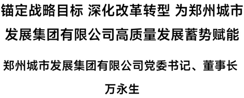 下面,為您推出鄭州城市發(fā)展集團有限公司黨委書(shū)記、董事長(cháng)萬(wàn)永生署名文章《錨定戰略目標 深化改革轉型 為鄭州城市發(fā)展集團有限公司高質(zhì)量發(fā)展蓄勢賦能》——