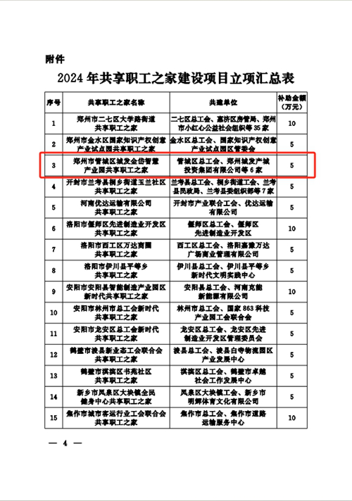近日,河南省總工會發(fā)布《關(guān)于2024年共享職工之家建設(shè)項目立項的通知》,決定對城發(fā)金岱智慧產(chǎn)業(yè)園共享職工之家等32個共享職工之家建設(shè)項目進行立項,并對城發(fā)金岱智慧產(chǎn)業(yè)園共享職工之家給予資金補助,鄭州市僅有三家職工之家獲得立項,這是城發(fā)金岱智慧產(chǎn)業(yè)園共享職工之家建設(shè)運營后取得的第一份殊榮。
