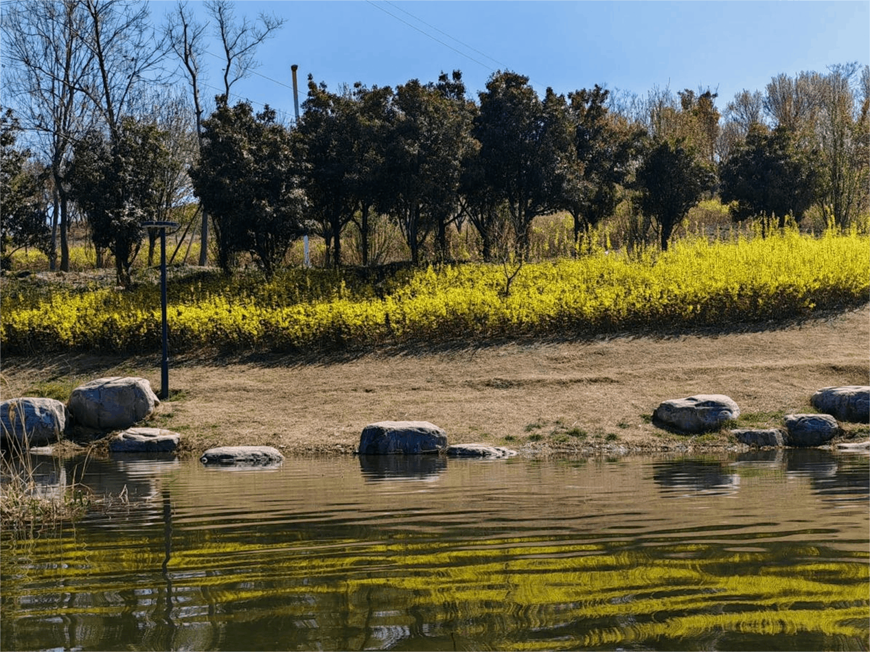 春日的賈魯河波光粼粼,岸線(xiàn)新植的二月蘭正吐出紫霧。