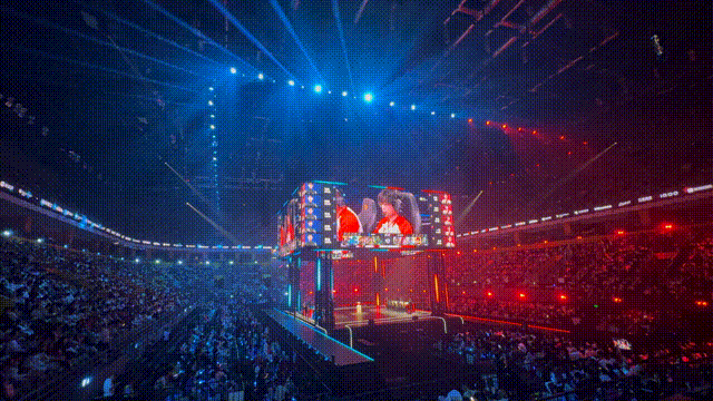 與網(wǎng)絡(luò)直播中隔著屏幕的旁觀感不同,鄭州奧體中心的現(xiàn)場(chǎng)將電競(jìng)賽事轉(zhuǎn)化為一場(chǎng)多維度的感官革命。