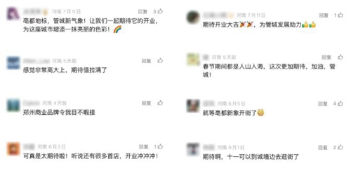 “讓我們一起期待它的開(kāi)業(yè),為這座城市增添一抹亮麗的色彩!”“感覺(jué)非常高大上,期待值拉滿(mǎn)了”“期待開(kāi)業(yè)大吉,為管城發(fā)展助力”從這些稿件中的評論區,我們能看出市民對“亳都·新象”的期待以及鄭州文商旅融合發(fā)展的信心。