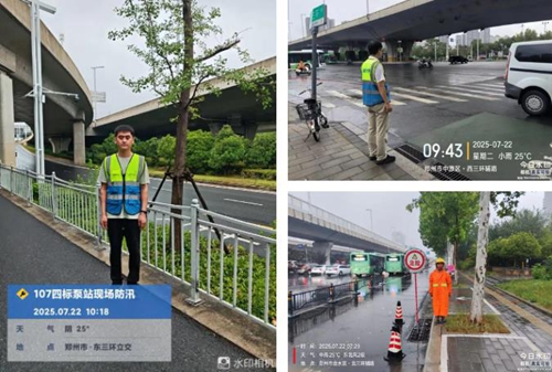 鄭州城建集團子公司城投建工道路運維項目及時(shí)部署防汛工作,投入大量人員、車(chē)輛及阻水板、反光錐等物資,明確防汛重點(diǎn),在積水點(diǎn),第一時(shí)間確保人員在崗值守。
