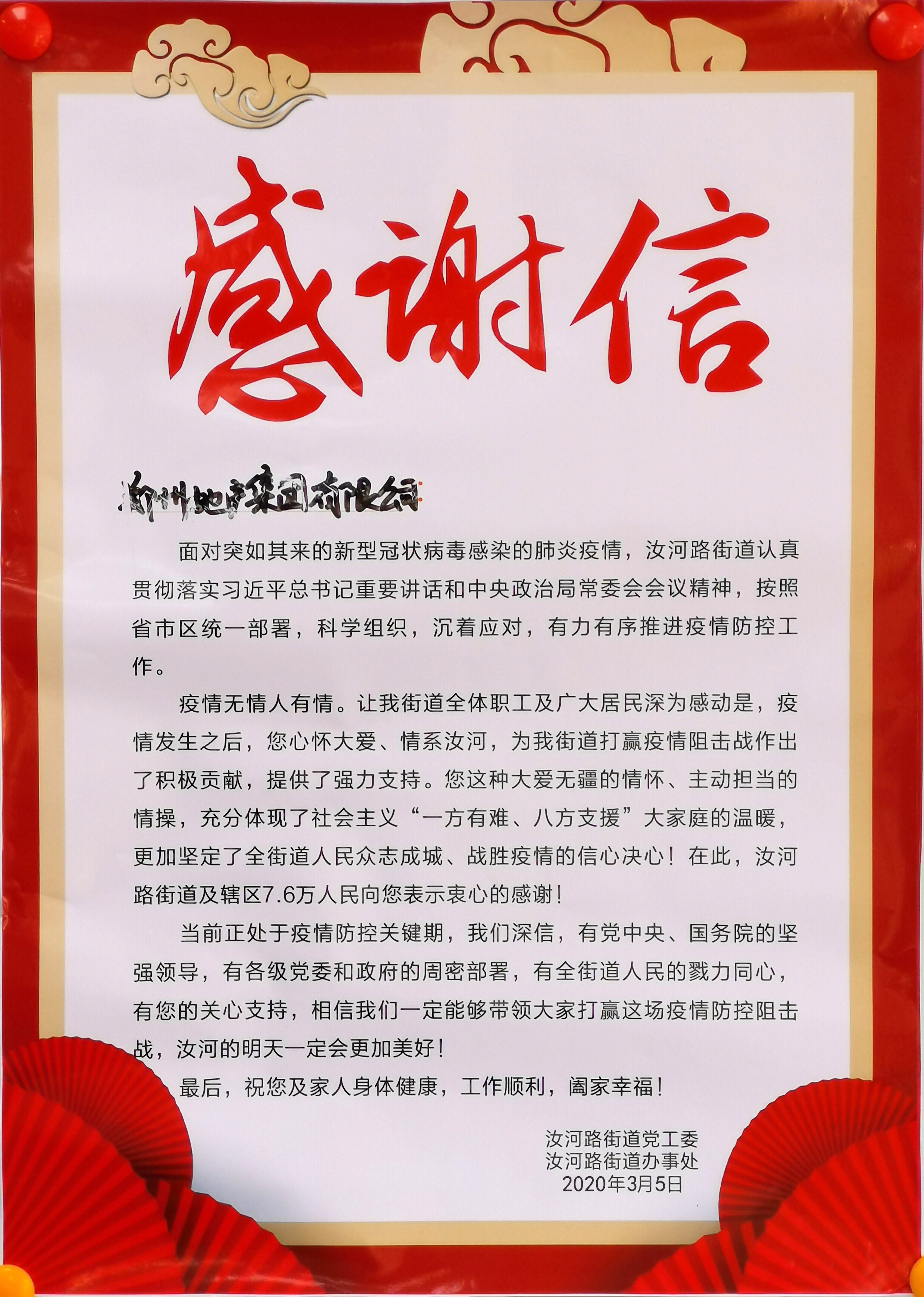 桐淮社區書(shū)記王輝代表社區工作人員和志愿者向集團領(lǐng)導送上《感謝信》,并表示集團的慰問(wèn)讓一線(xiàn)工作人員心里充滿(mǎn)了溫暖,也進(jìn)一步堅定了開(kāi)展疫情防控的信心和決心。在地產(chǎn)集團等社會(huì )各界的關(guān)心關(guān)注下,在無(wú)數雷鋒式志愿者的共同努力下,我們一定會(huì )打贏(yíng)新冠肺炎疫情防控這場(chǎng)硬仗。