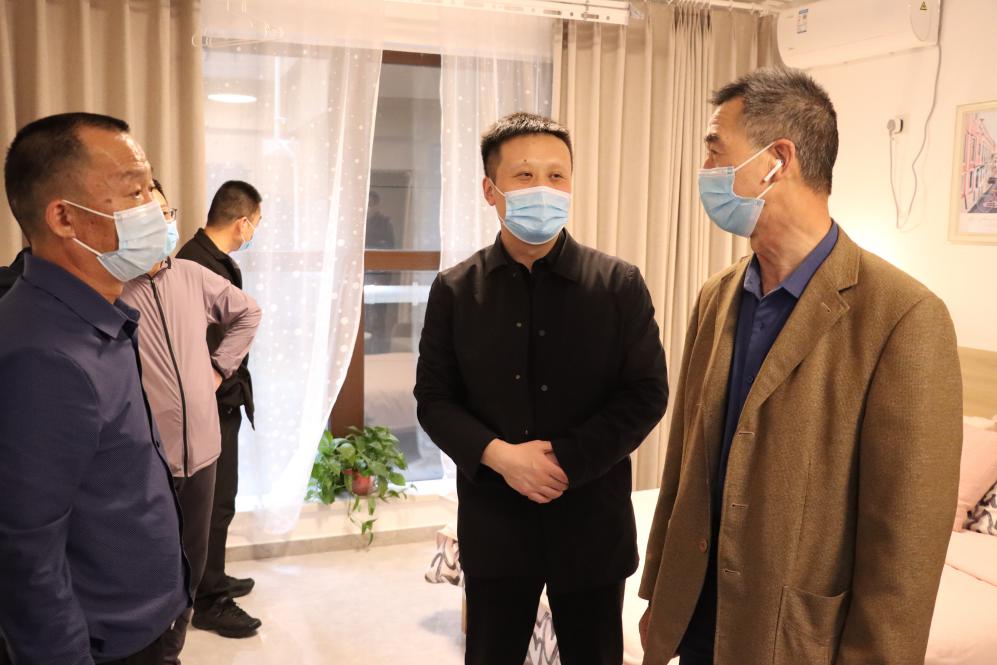 在項目現場(chǎng),楊慶忠一行聽(tīng)取了鄭地租賃公司負責人對項目定位設計、運營(yíng)模式、服務(wù)體系等情況的整體介紹,仔細參觀(guān)了各戶(hù)型樣板間,查看內部結構和功能設計,詳細了解了房屋精裝交付標準、共享空間搭建、安全管理模式、成本管控措施等情況,并現場(chǎng)互動(dòng)體驗了入戶(hù)智能門(mén)鎖及智能家居系統。