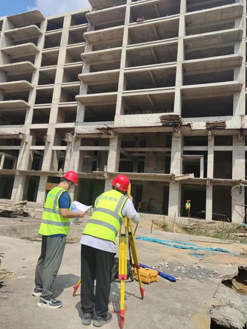 面對多處未竣工的復雜現(xiàn)場環(huán)境和時間緊任務重等諸多因素,測繪人頂住壓力,認真將地下車庫、墊層、筏板、地上住宅和頂板等一一做出分類測繪。