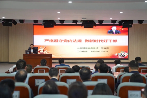 集團(tuán)黨委邀請河南省委黨校中共黨史教研部王春亮副教授,以《嚴(yán)格遵守黨內(nèi)法規(guī) 做新時代好干部》為題展開宣講。王教授分別從紀(jì)律嚴(yán)明是黨的光榮傳統(tǒng)和獨(dú)特優(yōu)勢、黨員干部嚴(yán)格遵守黨內(nèi)法規(guī)的迫切性和做嚴(yán)守黨內(nèi)法規(guī)好干部的主要著力點三個方面宣講,號召全體黨員干部要以黨紀(jì)學(xué)習(xí)教育為契機(jī),上好黨性鍛煉“必修課”。