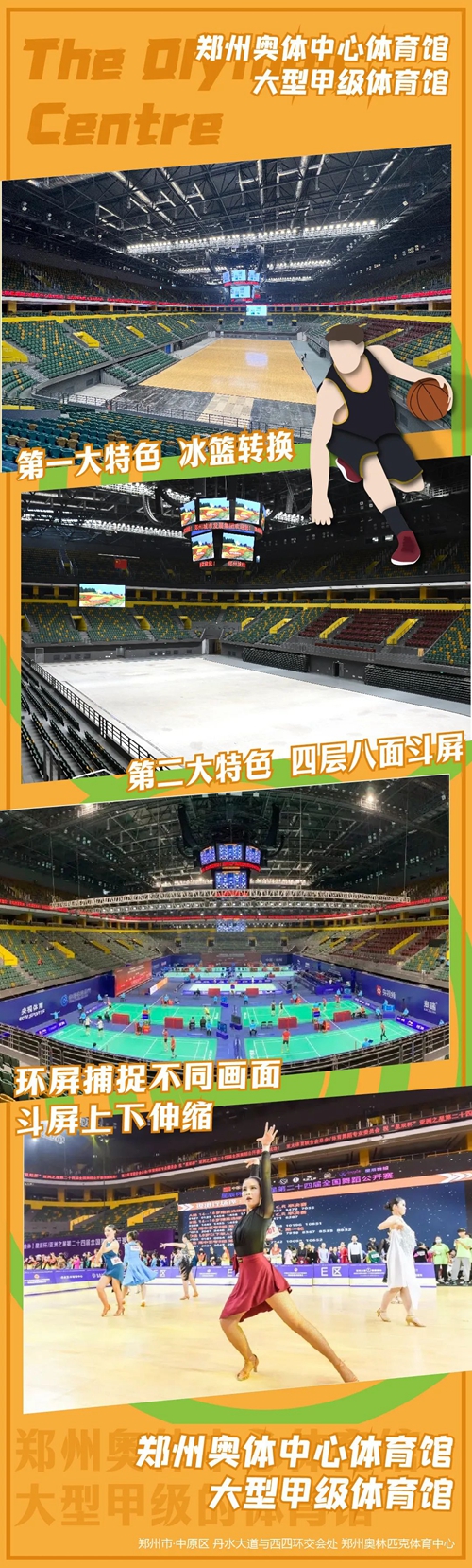 奧體中心體育館作為大型甲級(jí)體育館,空間使用靈活,場(chǎng)地利用率高。目前已經(jīng)舉辦了2019年世界乒聯(lián)巡回賽總決賽、2020年世界乒聯(lián)巡回賽總決賽、2019年全國(guó)羽毛球單項(xiàng)冠軍賽、2021年全國(guó)羽毛球冠軍賽暨第十四屆全運(yùn)會(huì)羽毛球項(xiàng)目資格賽、2022年河南省第一屆職業(yè)技能大賽、2023永慶安瀾德云社岳云鵬·孫越相聲專場(chǎng)等知名賽事活動(dòng)。下半年,將有更多知名演藝、賽事活動(dòng)在奧體中心體育館舉辦。主館西側(cè)為總面積約2100平方米的籃球熱身館,目前已經(jīng)舉辦過(guò)籃球、跆拳道、羽毛球等體育賽事,以及企業(yè)展銷、社區(qū)聯(lián)誼、動(dòng)漫展等活動(dòng);北側(cè)為冰上運(yùn)動(dòng)中心,擁有1800平方米國(guó)際標(biāo)準(zhǔn)冰,致力于為中部地區(qū)提供從啟蒙到精英級(jí)的系統(tǒng)化冰上運(yùn)動(dòng)培訓(xùn)。