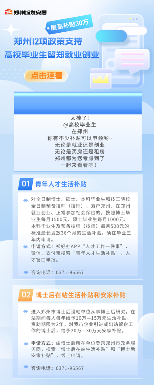 近年來,鄭州市通過盤活存量房源用作人才公寓、發(fā)放購(gòu)房租房補(bǔ)貼等形式,多渠道解決人才階段性居住需求。比如,鄭州市創(chuàng)新實(shí)施人才補(bǔ)貼,除了人才公寓以外,符合條件的博士、碩士、學(xué)士學(xué)位畢業(yè)生,5年內(nèi)分別可享每月3000元、1500元、1000元房租補(bǔ)助,購(gòu)房給予10萬元到30萬元不等的一次性購(gòu)房補(bǔ)貼。