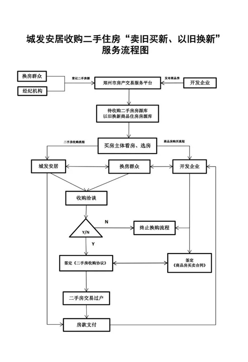 換房群眾可自主選擇通過“鄭州市房產(chǎn)交易服務(wù)平臺”或其它渠道掛牌出售二手住房、選購新建商品住房,自由交易實(shí)現(xiàn)“賣舊買新、以舊換新”。(二手住房不受城發(fā)安居公司收購條件限制、新建商品住房須位于主城區(qū)范圍內(nèi))