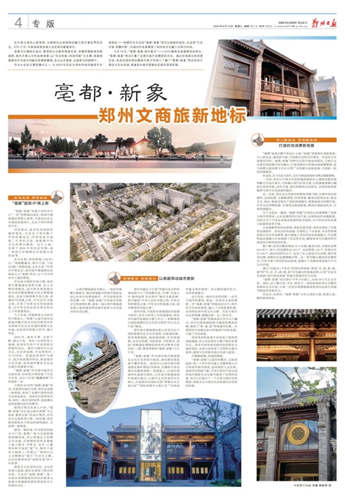 6月18日,“亳都·新象 城市復(fù)興”——2024媒體走進亳都活動舉辦,傳承鄭州城市文脈,和歷史風貌一脈相承,形成了充滿中原特色的文化商業(yè)街區(qū)?,F(xiàn)代的文化商業(yè)場景,融入了本地街巷肌理、空間特色和中原文化元素。歷史與現(xiàn)代在這里相遇,碰撞出獨一無二的火花。