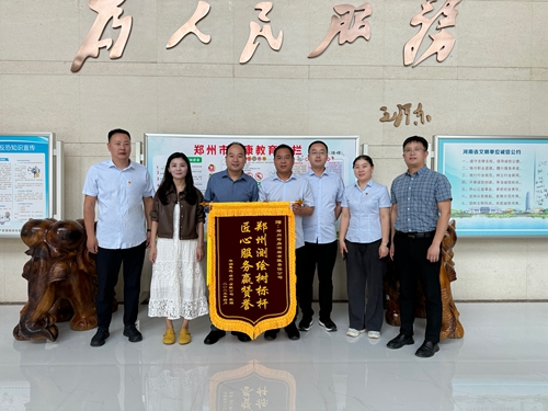鄭房測繪公司第三分公司接到鄭州新發(fā)展?jié)欀梅康禺a(chǎn)開發(fā)有限公司贈送錦旗 高鵬/攝