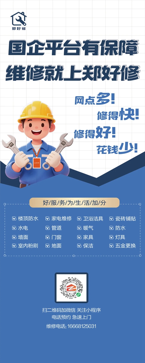 為切實解決群眾房屋維修難題,推動鄭州市維修服務業(yè)邁向標準化、透明化、便捷化發(fā)展新征程,由鄭州城發(fā)集團下屬子公司鄭州城發(fā)安居科技有限公司精心打造的“鄭好修”服務平臺,正式上線運營。市民通過鄭州安居微信小程序、鄭州安居微信服務號,即可輕松實現(xiàn)一鍵報修,享受優(yōu)質高效的房屋維修服務。