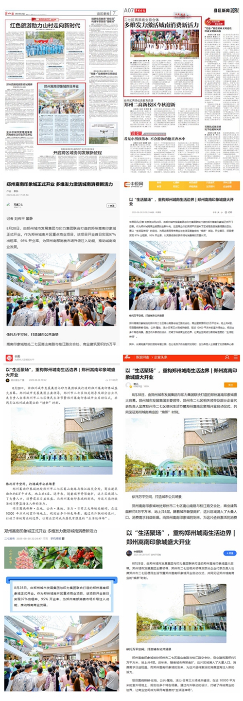 8月28日,鄭州城南商業(yè)格局迎來(lái)重大變革,由鄭州城市發(fā)展集團與印力集團攜手打造的鄭州嵩南印象城盛大啟幕,開(kāi)業(yè)首日客流達12.6萬(wàn)人次,迅速成為全城矚目的焦點(diǎn)。這一盛事引發(fā)了各大媒體的廣泛關(guān)注,河南日報客戶(hù)端、頂端新聞、大象新聞、大河報、大河網(wǎng)、映象網(wǎng)、河南經(jīng)濟報、鄭州日報、鄭州晚報、鄭州廣播電視臺等媒體紛紛聚焦,對其開(kāi)業(yè)進(jìn)行了全方位、多角度的報道。