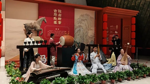 隨后,《古馬赴春 駿啟新章》的古樂(lè)表演悠揚(yáng)回蕩,身著商都元素華服的模特款款而行,演繹著古老文明的時(shí)尚新生。嘉賓們?cè)诖私獯a中國(guó)早期文明的根脈,感受歷史可觸、可品、可共鳴的鮮活氣息。