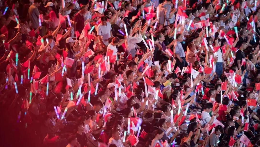 當(dāng)“我愛你中國(guó)”的字幕點(diǎn)亮全場(chǎng)的氣氛沸騰到了最高點(diǎn),絢爛的禮花綻放夜空,鄭州奧體中心變成歡樂的海洋。