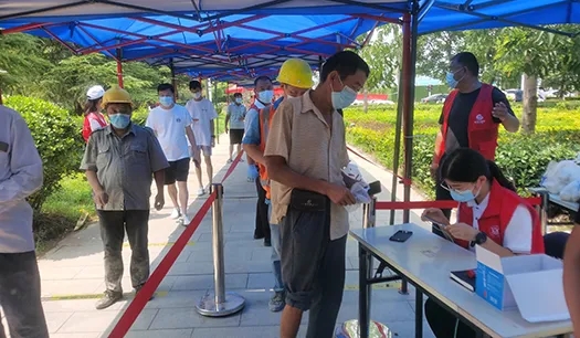 由于龍湖社區(qū)內(nèi)工地?cái)?shù)量多,人員流動(dòng)性大,檢測(cè)人群普遍年齡偏大,給檢測(cè)工作著實(shí)帶來(lái)一定難度。尤其是有一位工友,左腿受傷骨折,打著石膏拄著拐杖來(lái)做檢測(cè),他沒(méi)有拿身份證且隨行人員都不會(huì)熟練操作手機(jī)掃碼,但在志愿者的引導(dǎo)下,從帶領(lǐng)他走愛(ài)心通道、到協(xié)助錄入信息、幫助他們?nèi)私仄亮舸嬉约白罱K完成檢測(cè),志愿者認(rèn)真的工作態(tài)度得到了工友和社區(qū)工作者的高度贊揚(yáng)。檢測(cè)期間,志愿小隊(duì)統(tǒng)一按照社區(qū)的調(diào)度安排,各司其職,專人專崗,一切行動(dòng)聽(tīng)指揮,做到了各環(huán)節(jié)專人負(fù)責(zé)和快速反饋,整體檢測(cè)工作快速有序的進(jìn)行,僅在15日一天,社區(qū)就完成了4000余人次的檢測(cè)。來(lái)自龍湖社區(qū)的居民表示,第四次核酸檢測(cè)相較于前幾次效率明顯提高且秩序良好,從最初的半個(gè)小時(shí)以上到現(xiàn)在的幾分鐘,這不僅是效率質(zhì)變,更是廣大一線工作人員的付出心血,大家都非常感謝他們。